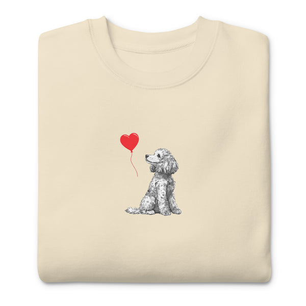 Show your love with the Poodle with Heart Balloon Sweatshirt! This cozy sweatshirt features a cute poodle looking up at a heart-shaped balloon.